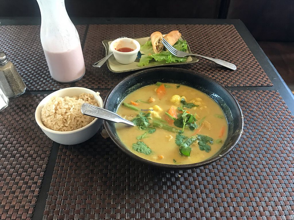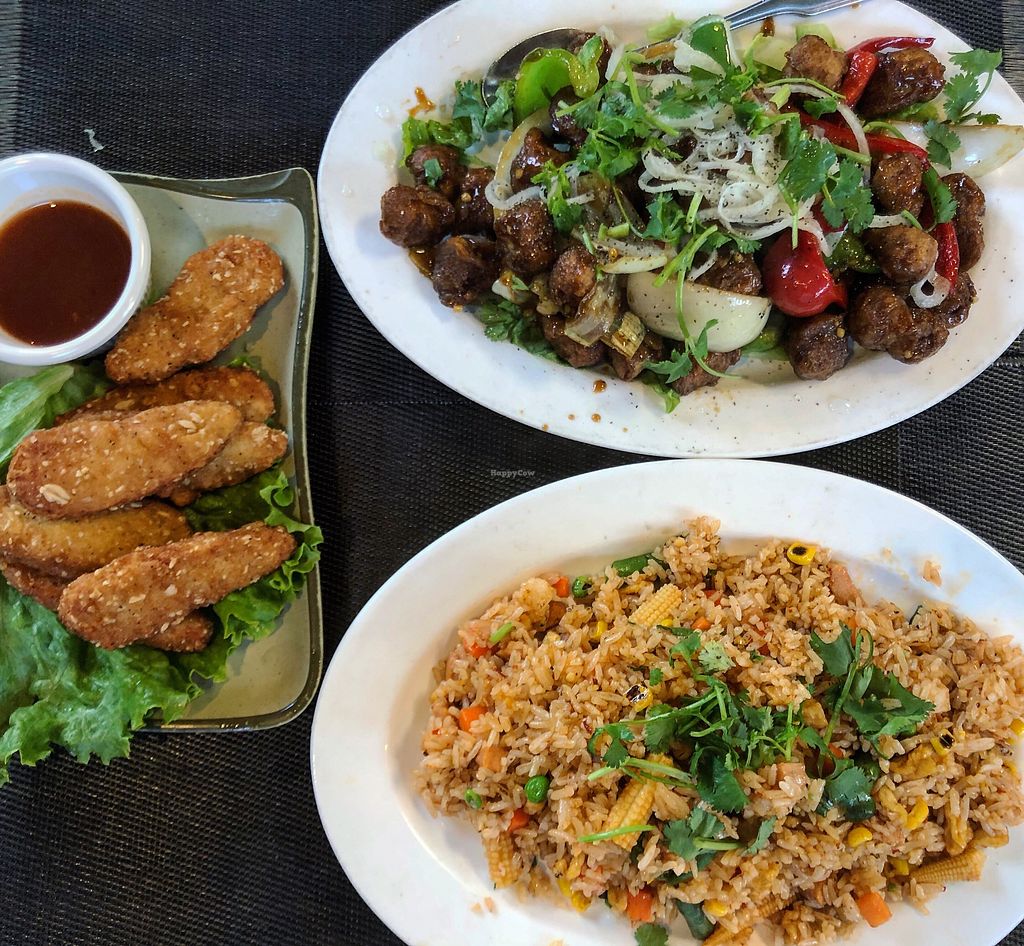 Varied menu allows something for everyone. I would have given five stars if they offered baked tofu or tempeh as an alternative to fried tofu and processed soy protein. For those adhering to a whole foods plant-based diet it's a bit challenging to find dishes without oil or processed soy protein on the menu although there are a few options. To their credit, when I asked for minimal oil they did a pretty good job. An oil-free tofu/tempeh option would guarantee my repeat business as their food is very flavorful. The restaurant was quite noisy so it wasn't the best place to carry on a serious conversation, but it was still a pleasant place to meet friends.