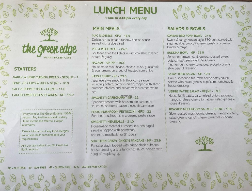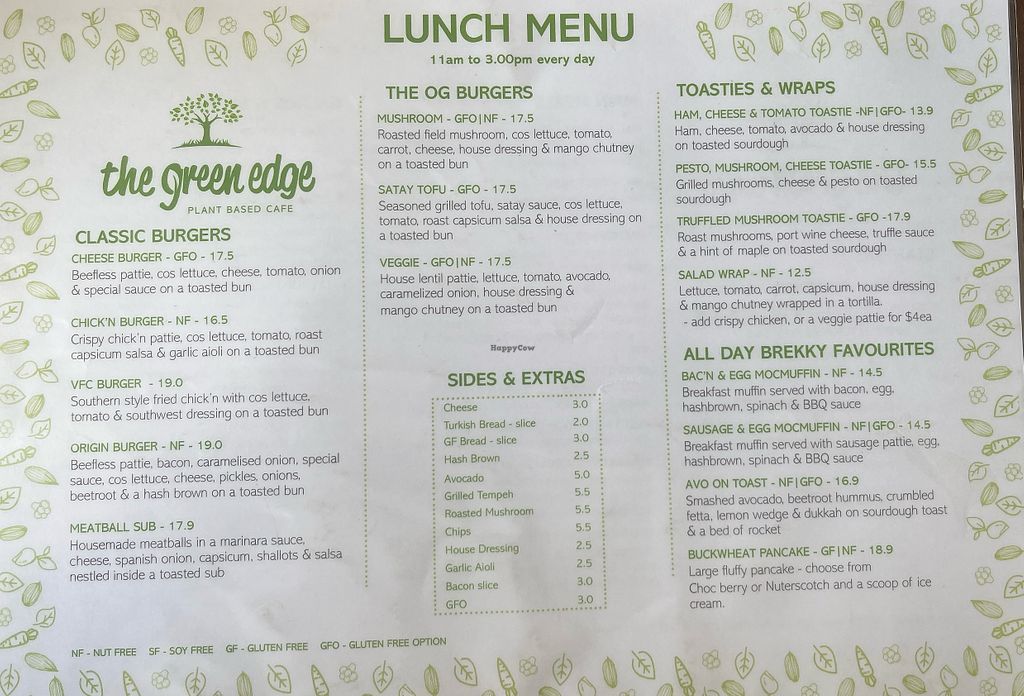 After all the years that I have been going to 'The Green Edge' I have never been dissatisfied. They always lead the way in offering great food and service. The plus is also that they have a great range of cruelty free items available in the attached shop as well. This place will always be one of my favourites!