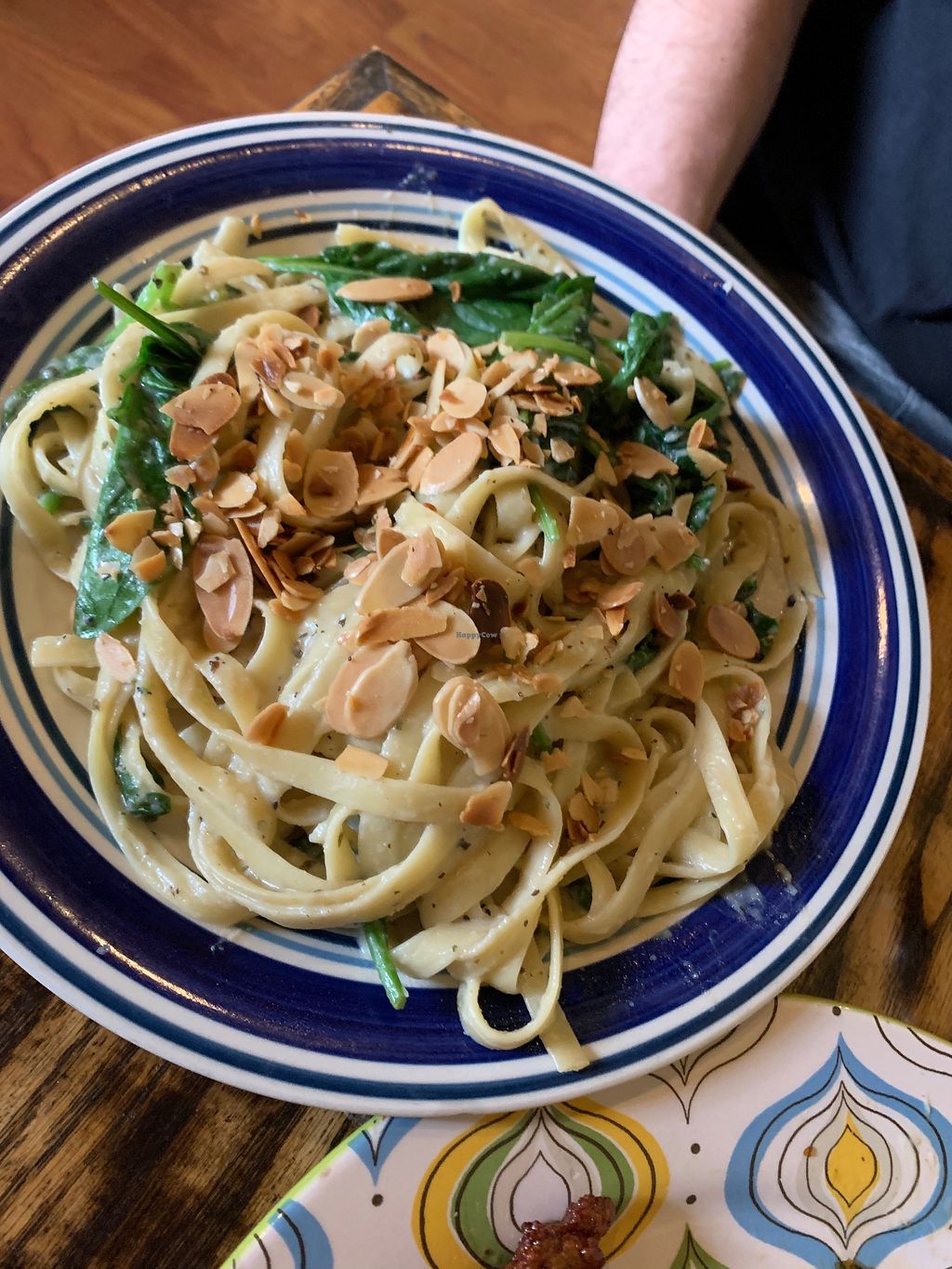 Have been by twice. Must try the homemade hummus: eggplant hummus is amazing. Also, the vegan alfredo is a MUST. Green Fork also has vegan ice creams that changes flavors per day and they are made fresh in house. Great live bands on the weekends as well.