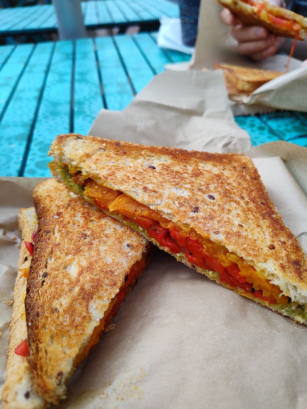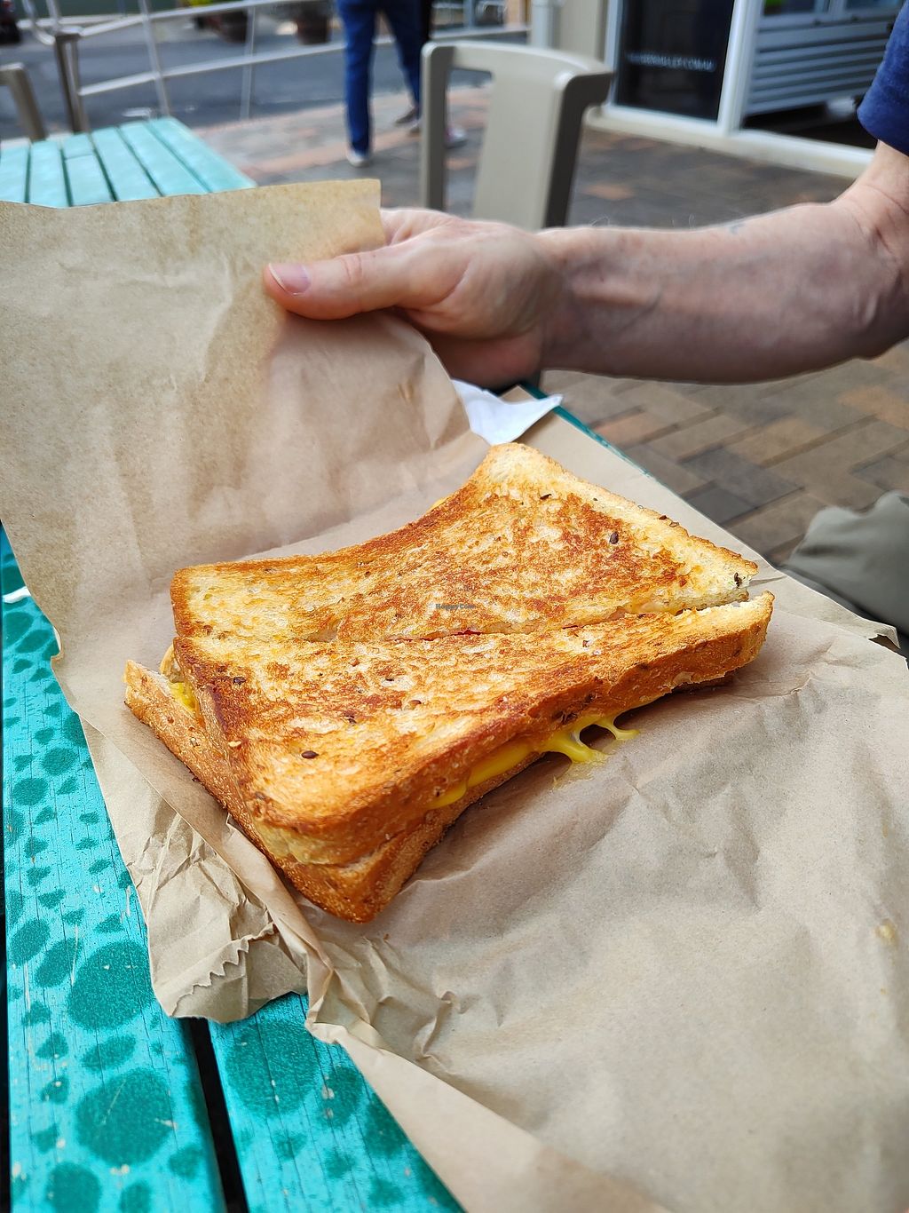 We stopped by for breakfast and ordered the pumpkin & pesto and cheese & tomato toasties with coffee and a soya chai latte. The food was great and the wait staff was cheerful and welcoming.