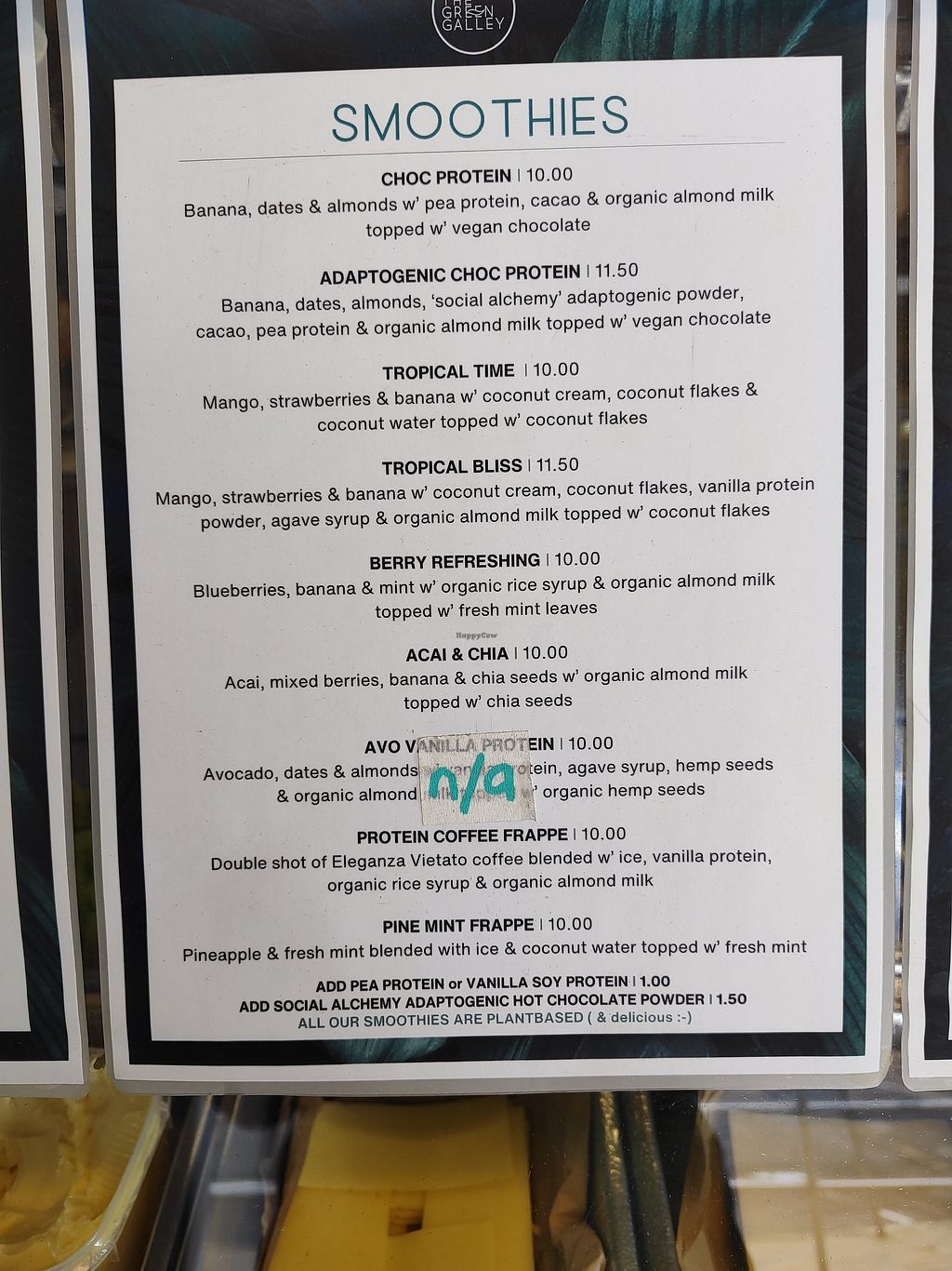 I had a delicious vegan burger and a choc smoothie. Both were absolutely delicious and totally vegan. Place is tucked around the side but is an absolute gem. Really nice staff and great vibes 10/10
