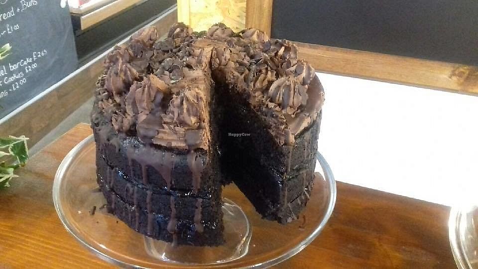 Triple Layer Vegan Chocolate Cake with Black Cherry Compote