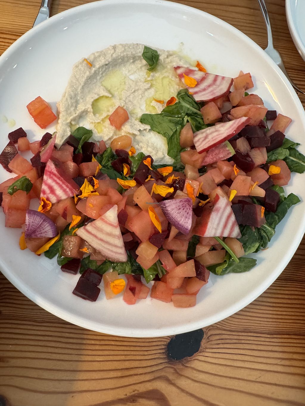 Read moreWe had the beet tartare and farroto, then the watermelon salad and the corn bisque, followed by the lions mane mushrooms entree and the eggplant tian. All the dishes had complex balanced flavor profiles.