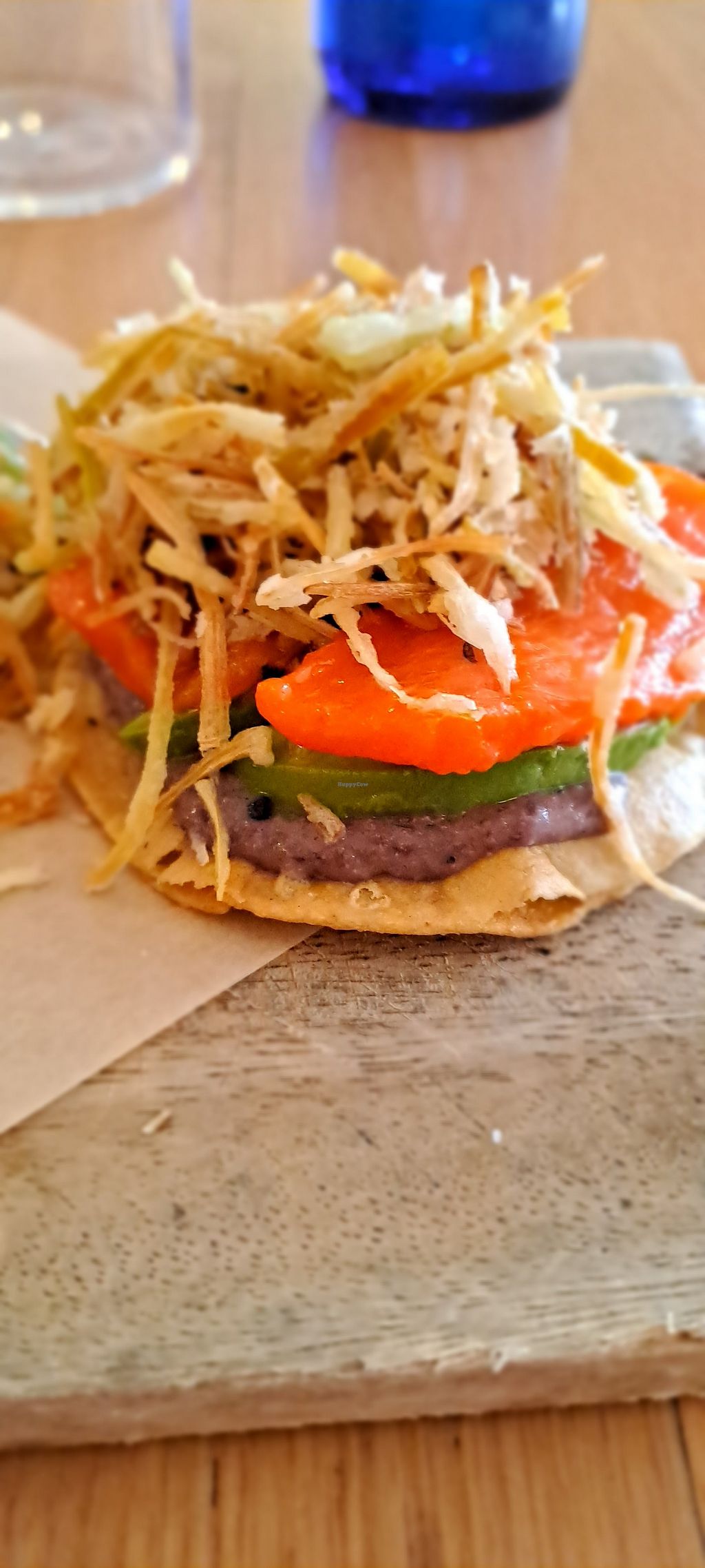 It took me a few minutes to find this place hiding next to a Oaxaco place....It was so nice and upscale and yet still I felt fine in street clothes. Service was great and the food was very tasty. I got the one that was Tempeh on top of warmed papaya (forgetting the name at the moment) and it had two tapas and peanut sauce on the side! Very filling and delicious.