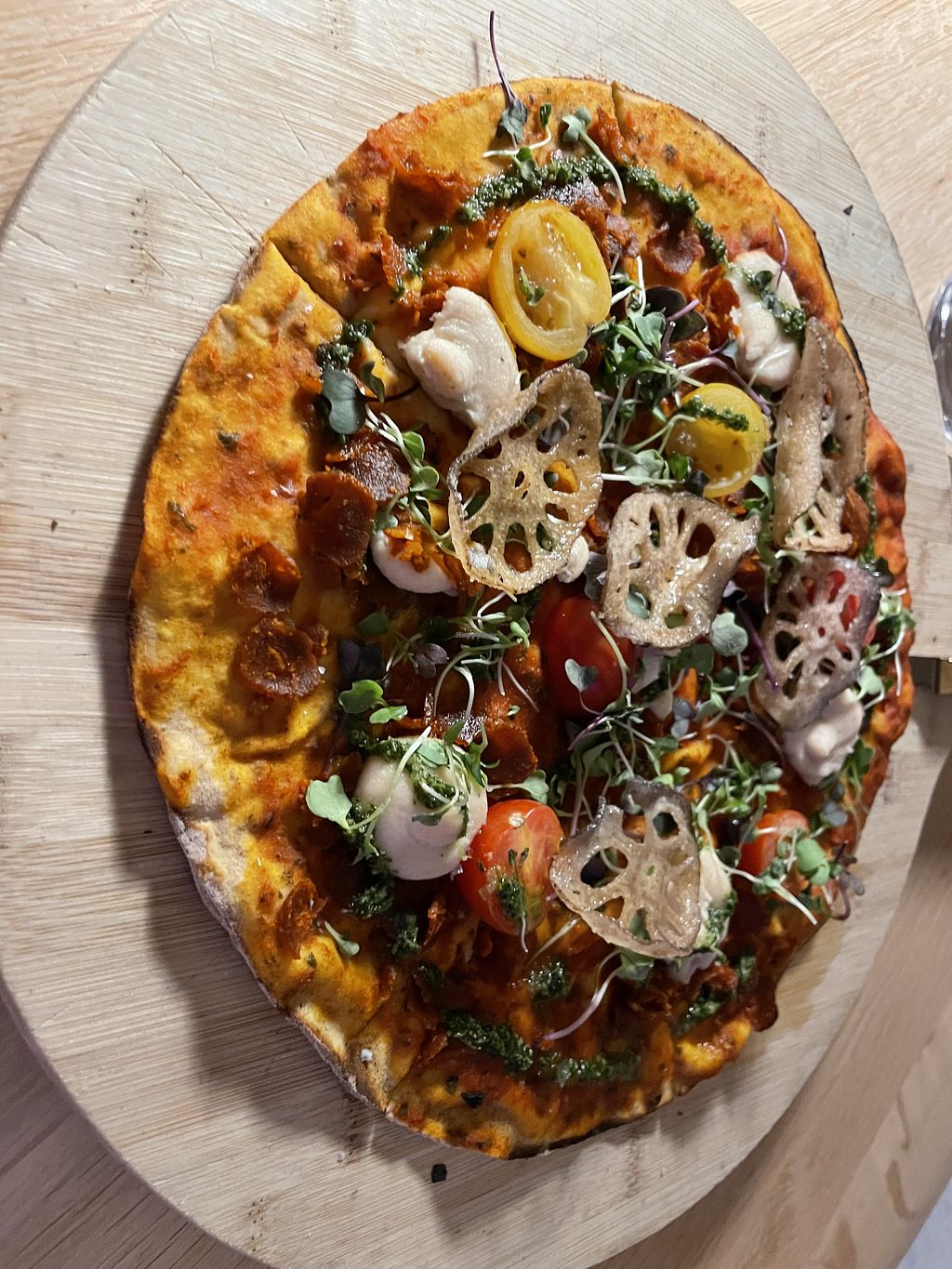 I got the vegan pizza which by default comes with a gluten free base, I asked for the regular base, and it was 100% one of the best pizzas I've ever had.