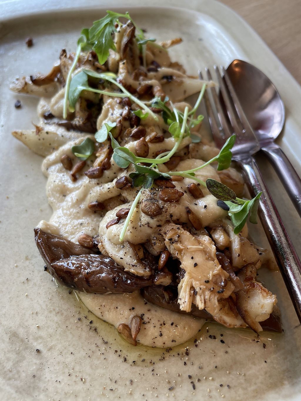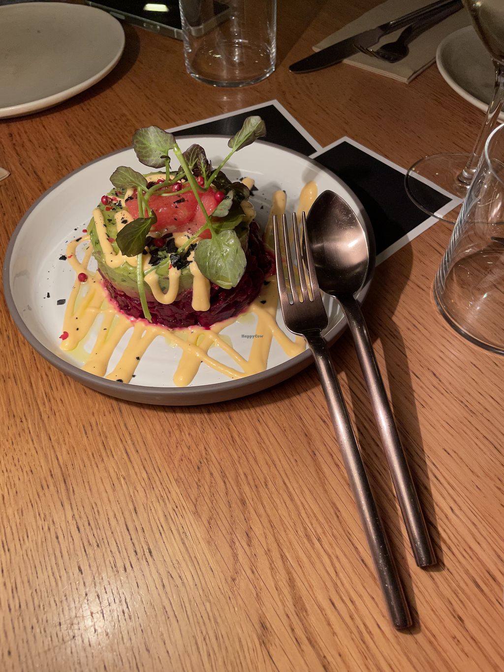 I like this place for it's elegant and yet casual atmosphere, the friendly service and the excellent vegan food. The presentation is inspiring. There is vegan wines on the menu. Really nothing negative to say about it.