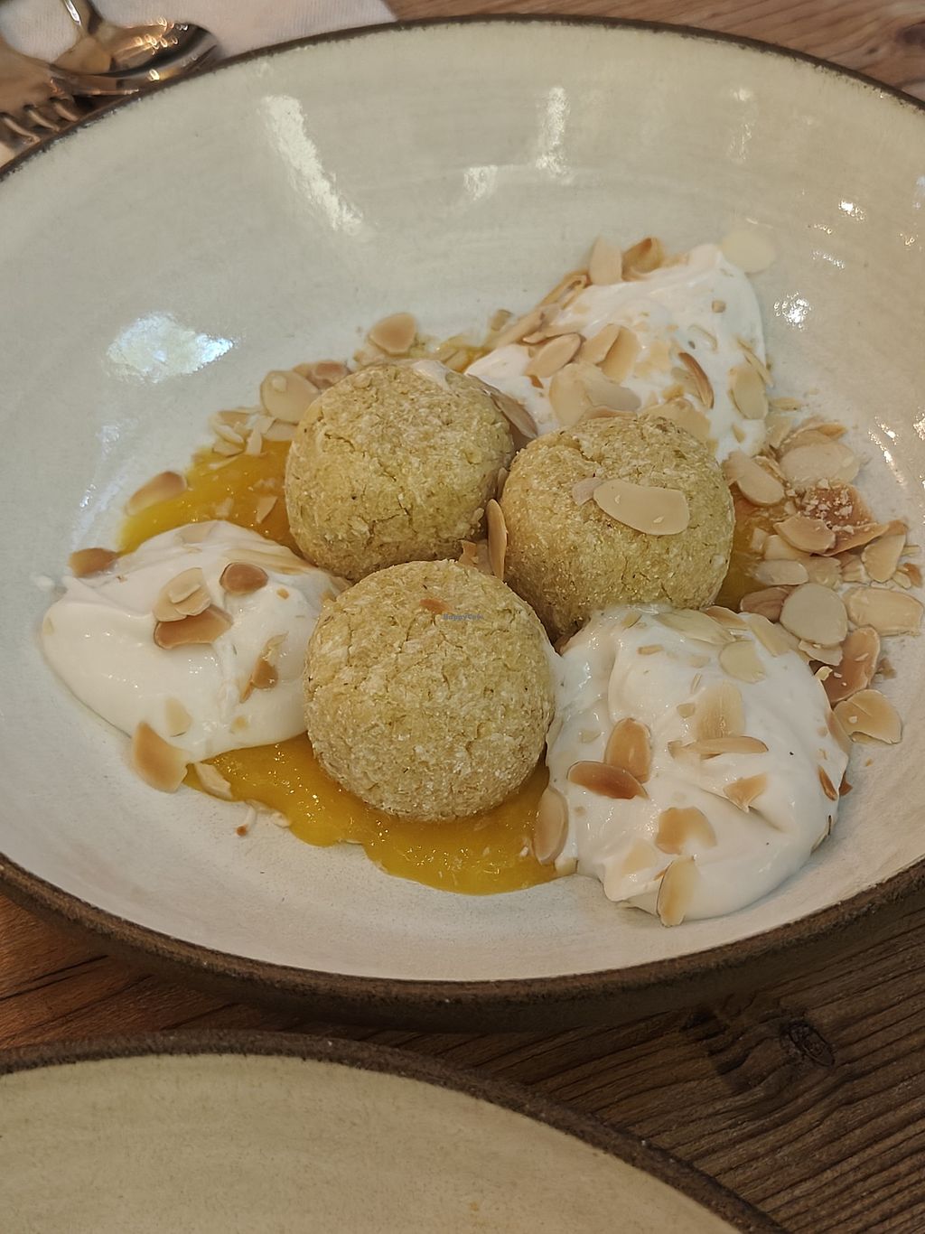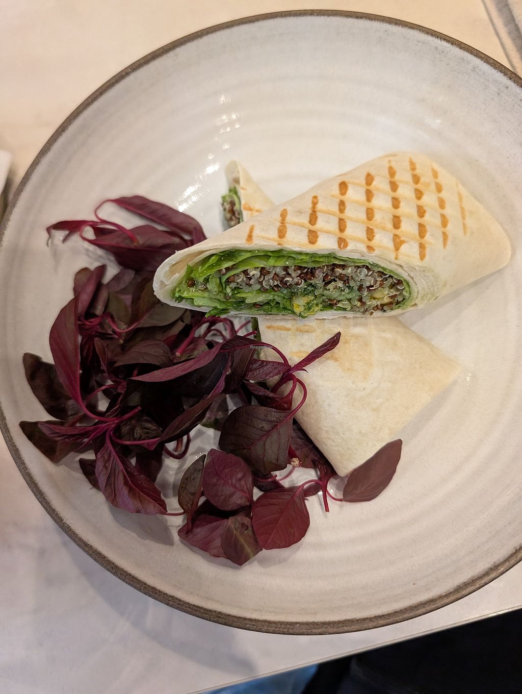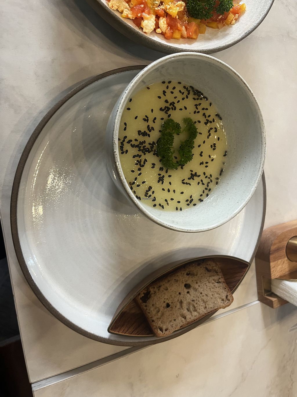 Tofu tomato scramble, diced avocado and cucumber salad with whole grai…