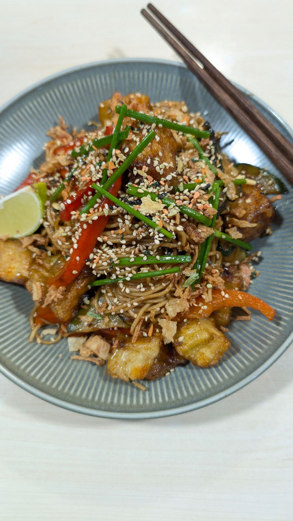 We had the Yakosoba noodles with a side salad and steamed vegetables for lunch. All very tasty.
