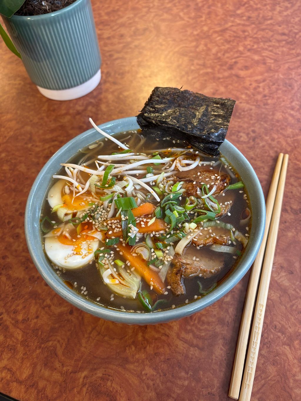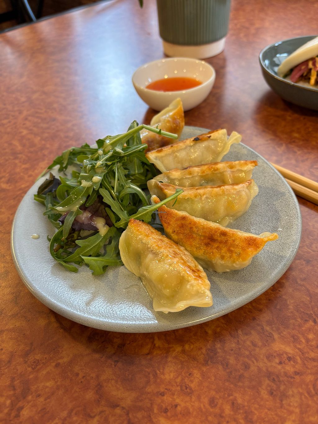 Serves meat, vegan options available. International fusion restaurant with vegan choices. Example offerings include gyoza, vegetable yakisoba, hummus with pita, ramen, salad and more. Open Thu-Sat 12:30-15:30, Thu 19:30-22:30, Fri 19:30-23:00, Sat 19:30-22:30, Sun 12:30-16:00. Closed Mon-Wed.