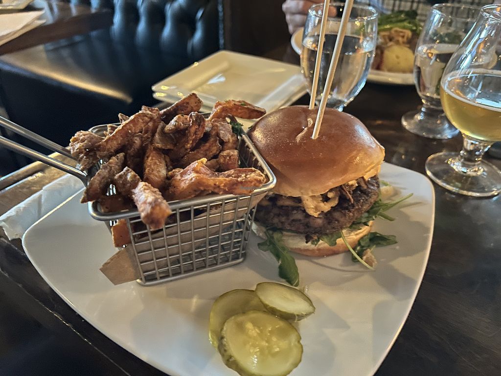 During Covid, they only have one vegan item on the menu. It’s a beyond burger with lots of toppings. It was very good and the fries were also super good. Watch out, pickles are spicy!