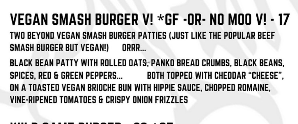 Current menu has a vegan smash burger for $17 or ramen for $21 ($6 more for tofu). The options are clearly labeled as V! with several more vegetarian options. I thought the burger was overcooked and super salty but nice to have an option if you’re going out with people in East Aurora. Extensive beer menu.