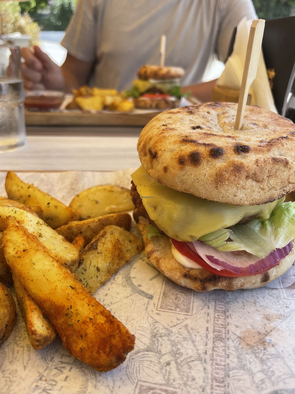Read morewe had all vegan options: falafel pita (5€), vegetable pita (7€), falafel plate (12€) & vegan beyond meat burger (14,50€). everything was super tasty. the pitas (especially falafel) were the best deal.