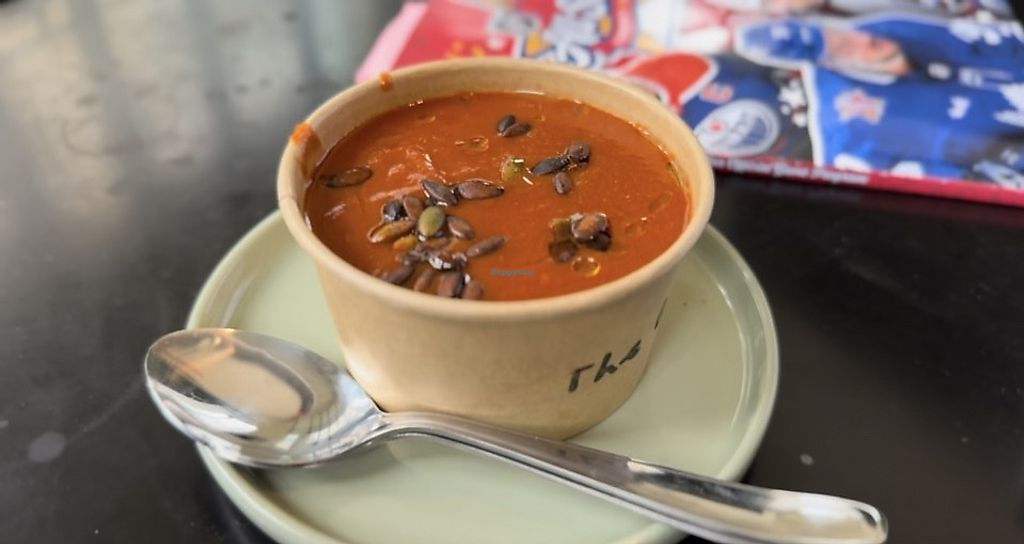 Aww is a new vegan café in downtown Vancouver! It's a sports bar, vegan protein bar, and bakery all in one! There's also a space with free sugar-free "clear" protein shakes on tap. We had a Brew smoothie, tomato soup, and an almond croissant. It's also a sports lounge to relax after a workout!