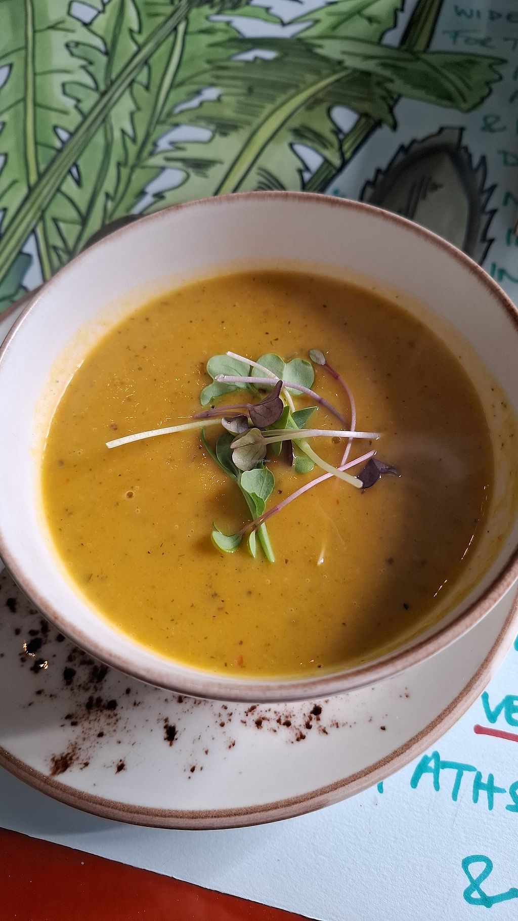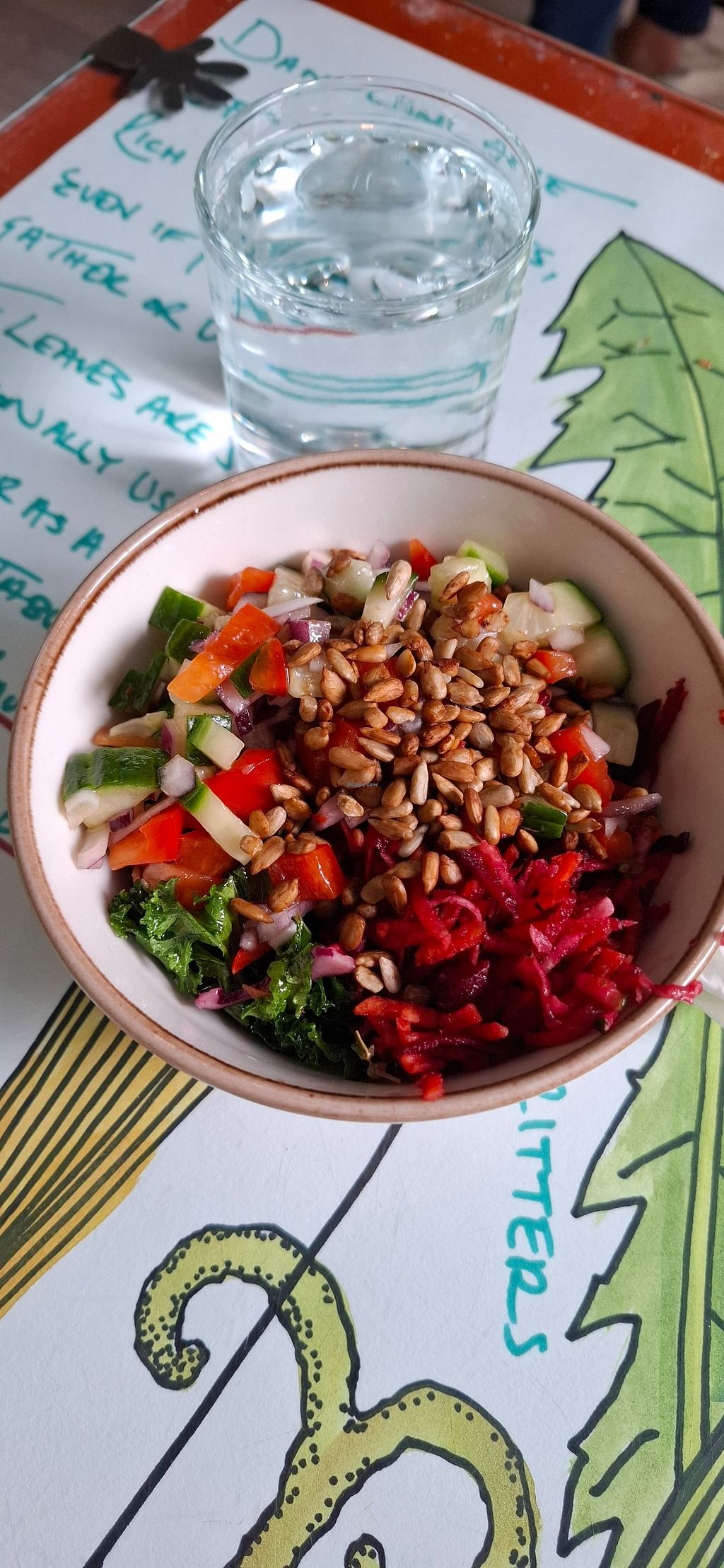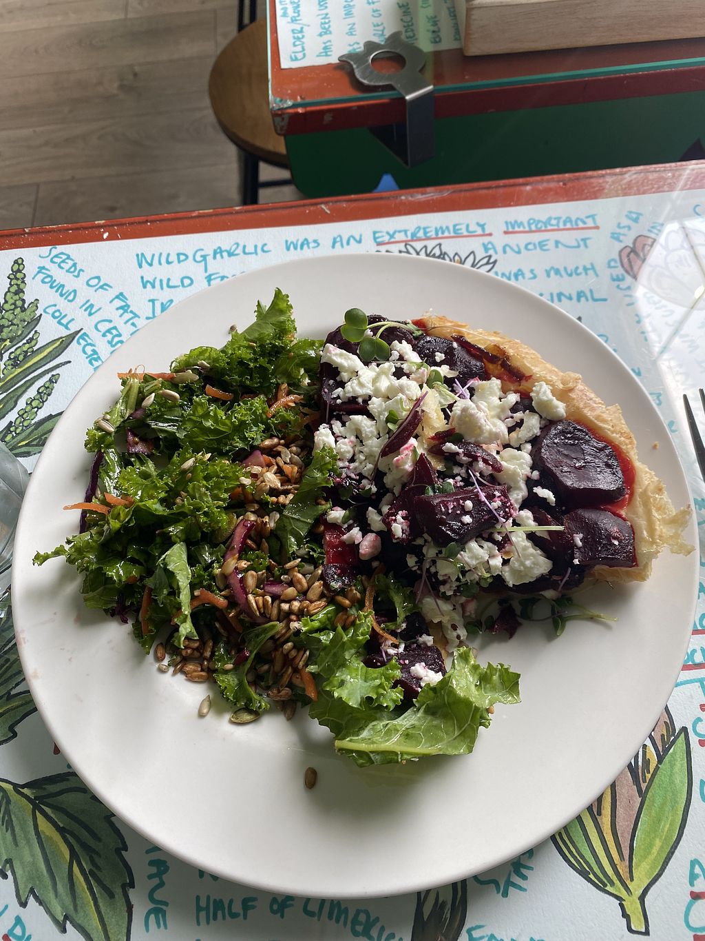 Sehr hübscher Ort. Wir waren relativ nah am Ende der Öffnungszeiten da, deshalb gab es nur noch Sausage Rolls, Salate und die Suppe des Tages. Es war alles sehr lecker und fast alles vegan. Nur ein paar Salate waren mit Mayo in der Sauce, was auf Nachfrage sehr gut unterschieden wurde.