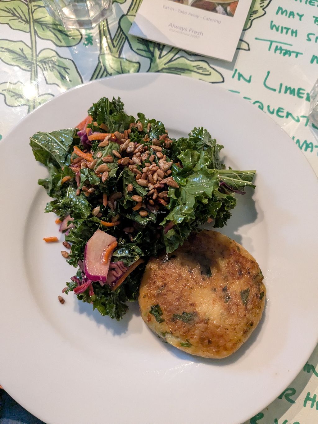 Read moreWe came a bit before lunchtime, as it was indicated it could get busy. With the 2 other tables on the small terrace full, we still had the last table to sit but were the only one ordering. As everything is ready, you get your food quickly. You get to pick your main dish (we had vegan options of homemade patty, sausage roll or curry) and 3 types of salad.