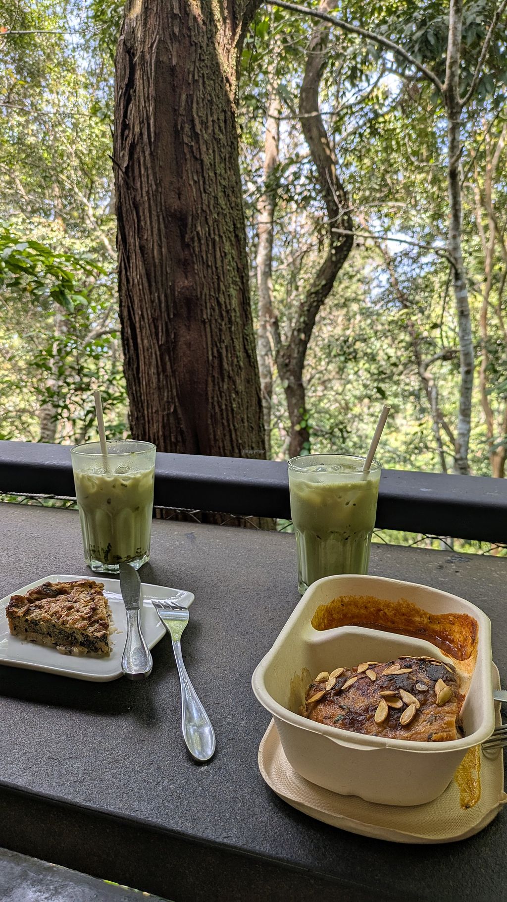 Read moreWe had a macha latte (oat milk), passionfruit spritz, and a piece of cake each.