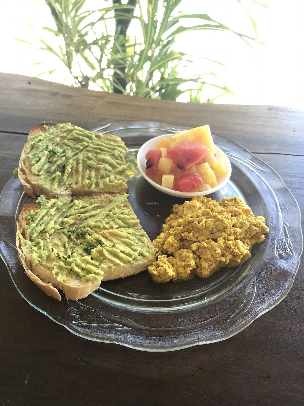 Avacado toast on homemade vegan bread and seasonal fruits!
