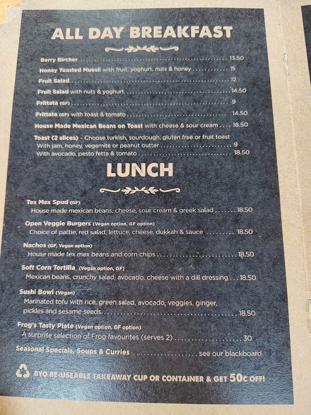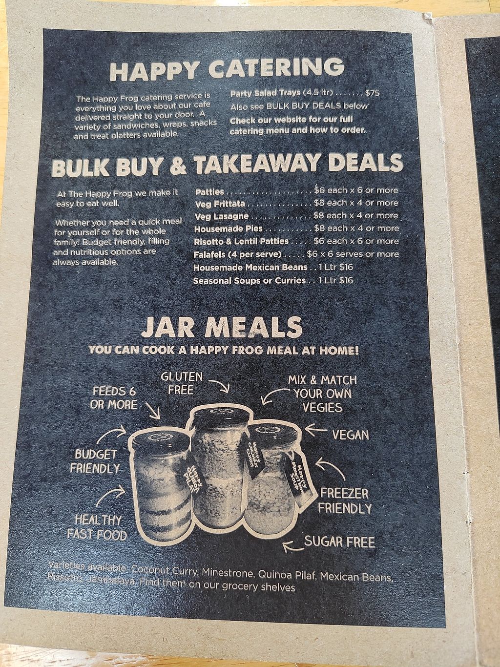 The happy frog always has such fresh and delicious varieties of salads, some of which are vegan. I love the atmosphere of this place and is the best place in Coffs to pop into for a coffee and a quick lunch.