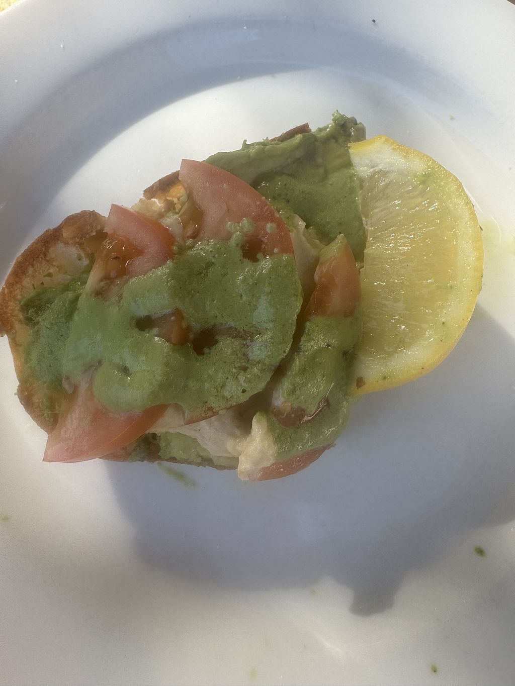 Breakfast - Avocado, pesto, hummus, tomato & lemon on Turkish Bread 😋