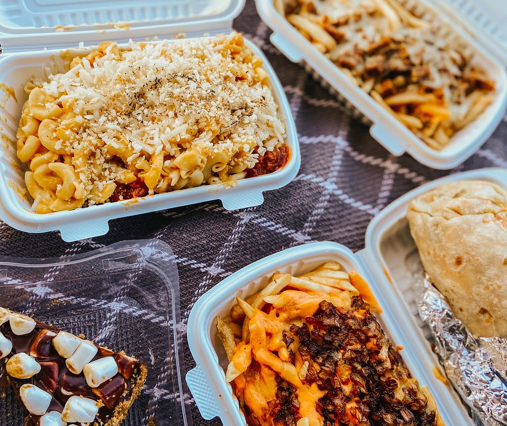 Menu offers vegan comfort foods including chilli cheese fries, burritos, jackfruit enchiladas, a few kinds of burgers, and sides like mac n cheese and buffalo cauliflower wings. Cakes for dessert. This branch est. 2020. Confirmed closed June 2022.