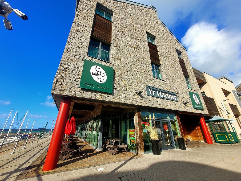 Yr Harbwr is a Table Table restaurant and is located on the picturesque Doc Fictoria in Caernarfon. The menu can be found online, and vegan options are labelled.