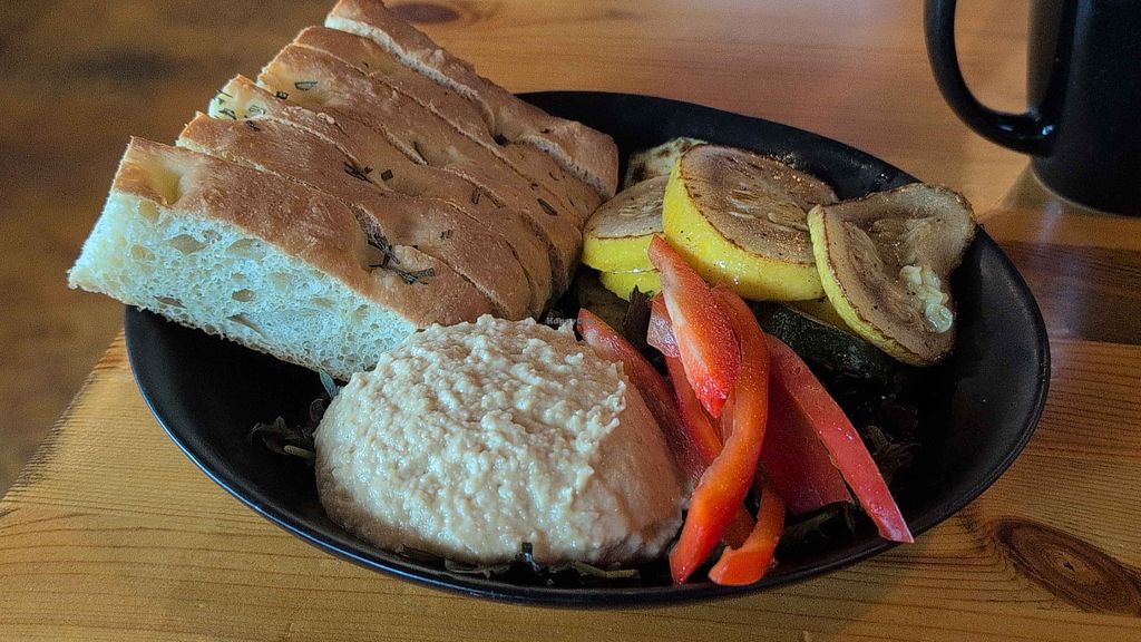 Serves meat, vegan options available. Sandwich shop and bakery where guests can specify vegan (no egg, no butter) when ordering. Vegan options include roasted garlic hummus and a modified caprese sandwich without animal-based ingredients. Open Mon-Sun 9:00am-6:00pm.