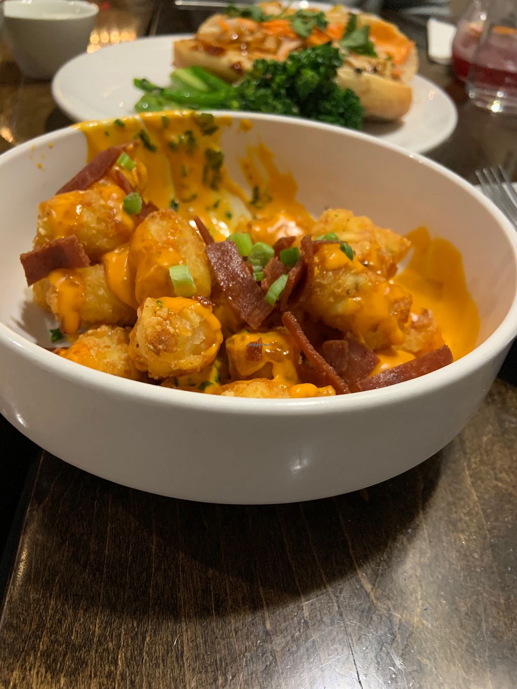 Great date spot. Gives a mildly fancy vibe but you could still come casual. Was super impressed by the vegan wings. Big portion and tasty too! Loaded tots were really satisfying. The cheese gave me daiya sauce vibes which im not opposed to, but i know theres some haters out there haha. Love that you can get junk foodish or healthier options. Overall would definitely return. They also have brunch food which sounded banging!