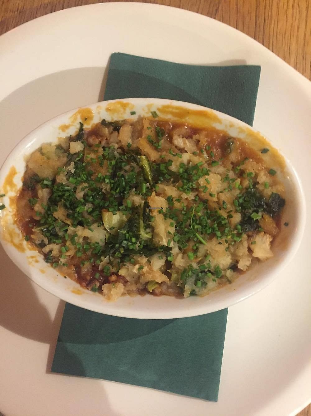 The board listed 4 different vegetarian options, some of which had extra labels (v) or (ve) but we were told all the options were vegan (our waitress did confirm with the kitchen for us). We had the bean provencal, which was freshly cooked and very tasty. It was a bit disappointing to see a huge list of ice cream flavours but no vegan dessert options - given it’s a little way outside town, a few good dessert options (vegan fruit pie would fit in with the rustic menu perfectly) would be the decider to convince me to return.