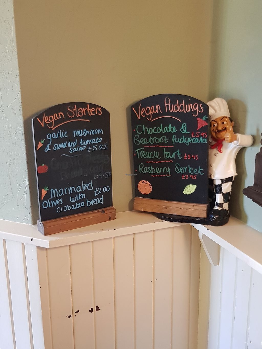 The website has a good vegan/vego menu but this is not offered at the pub. One vegan option on the menu, and I had to ask the kitchen what was in it three times. When it came out it was not as described (just vegetables, no beans or pulses). Nice enough pub but not professional so not worth the bother to me.