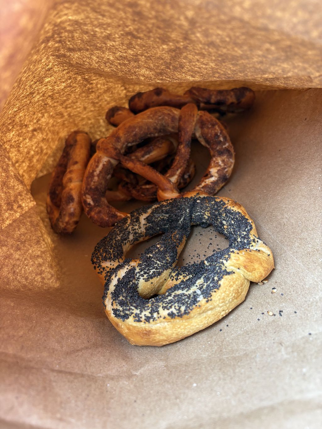 There are several vegan Pretzels for a reasonable price. My kids liked them