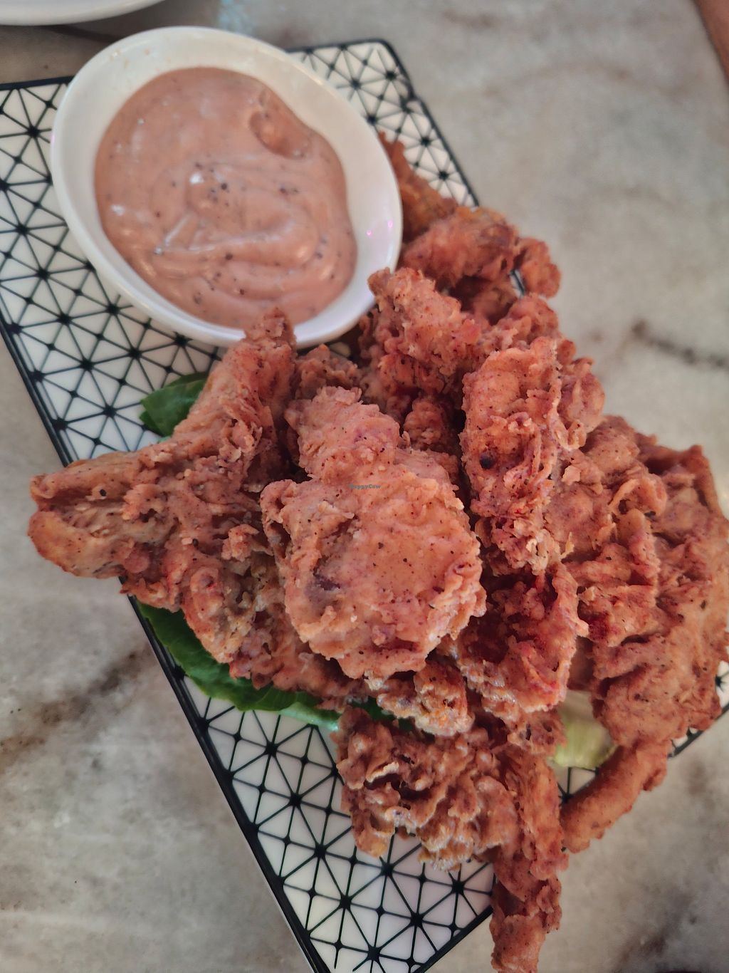 We tried two of the sharing plates. The fried cheeken was really tasty - battered and deep fried oyster mushrooms. The batter was crispy and well seasoned for a good savoury taste. They weren't really much like chicken, but they were excellent fried mushrooms.