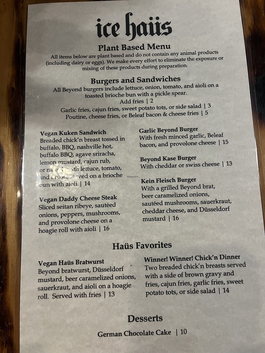 Fully vegan front and back menu— they ask at the door what kind of men…