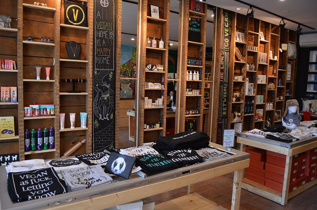 Vegan shop est. 2016. Features a variety of goods: shirts, shoes, purses, wallets, and accessories. Reported closed April 2022.