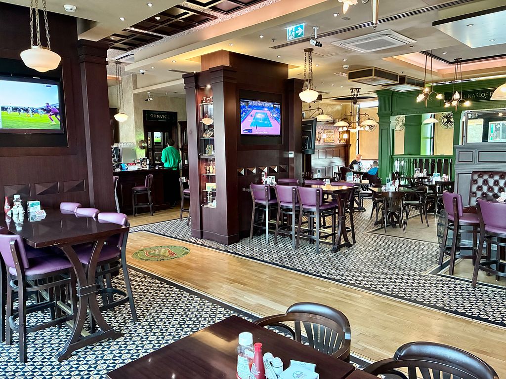 Serves meat, vegan options available. Irish pub and restaurant. Offers a few labelled vegan items such as Impossible burger, Impossible cottage pie, quinoa salad, stir fry, nut roast and cauliflower manchurian. Open Mon-Thu 11:00am-1:00am, Fri-Sat 11:00am-2:00am, Sun 11:00am-1:00am.