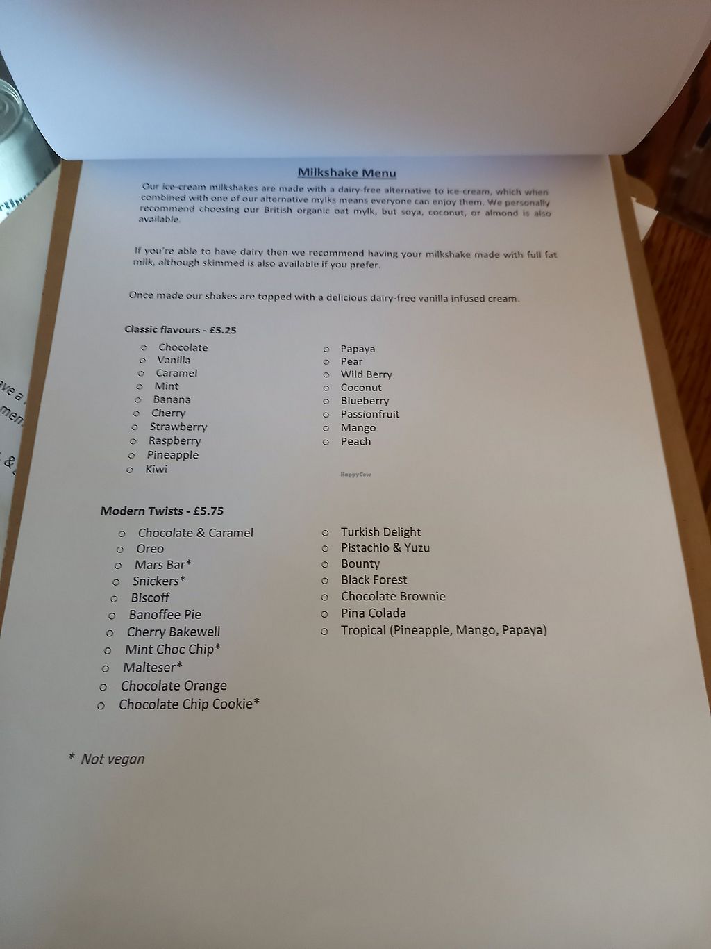 Pros: Loads of Vegan Cakes, Great Views, Vegan Milks and Cream, Quirky Cafe, Vegan Milkshakes, Lovely Staff Member