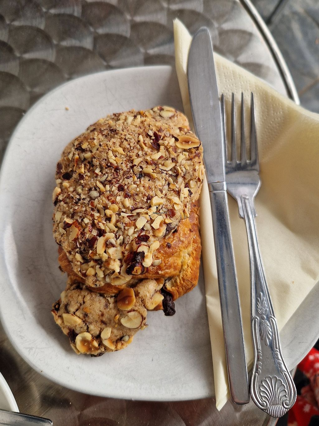 Pros: Vegan hazelnut pan chocolat, Plant milks, View