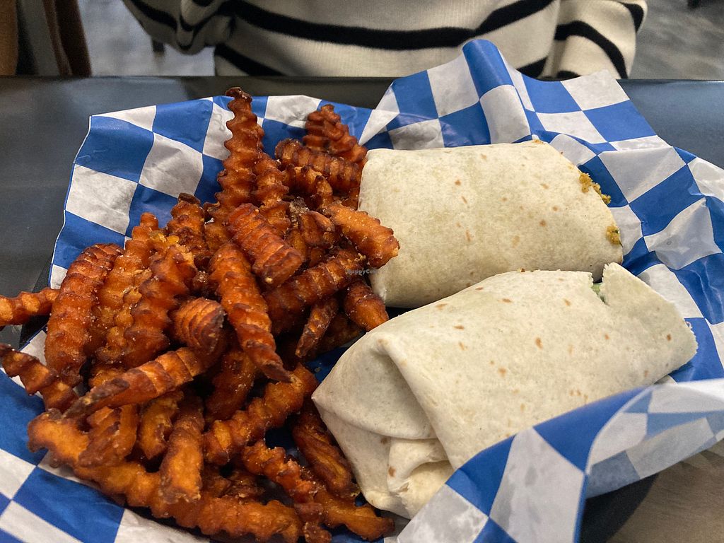 We both enjoyed the falafel wraps. I had mine without the tzatziki sauce in order to veganize it. The accompanying french fries were good.