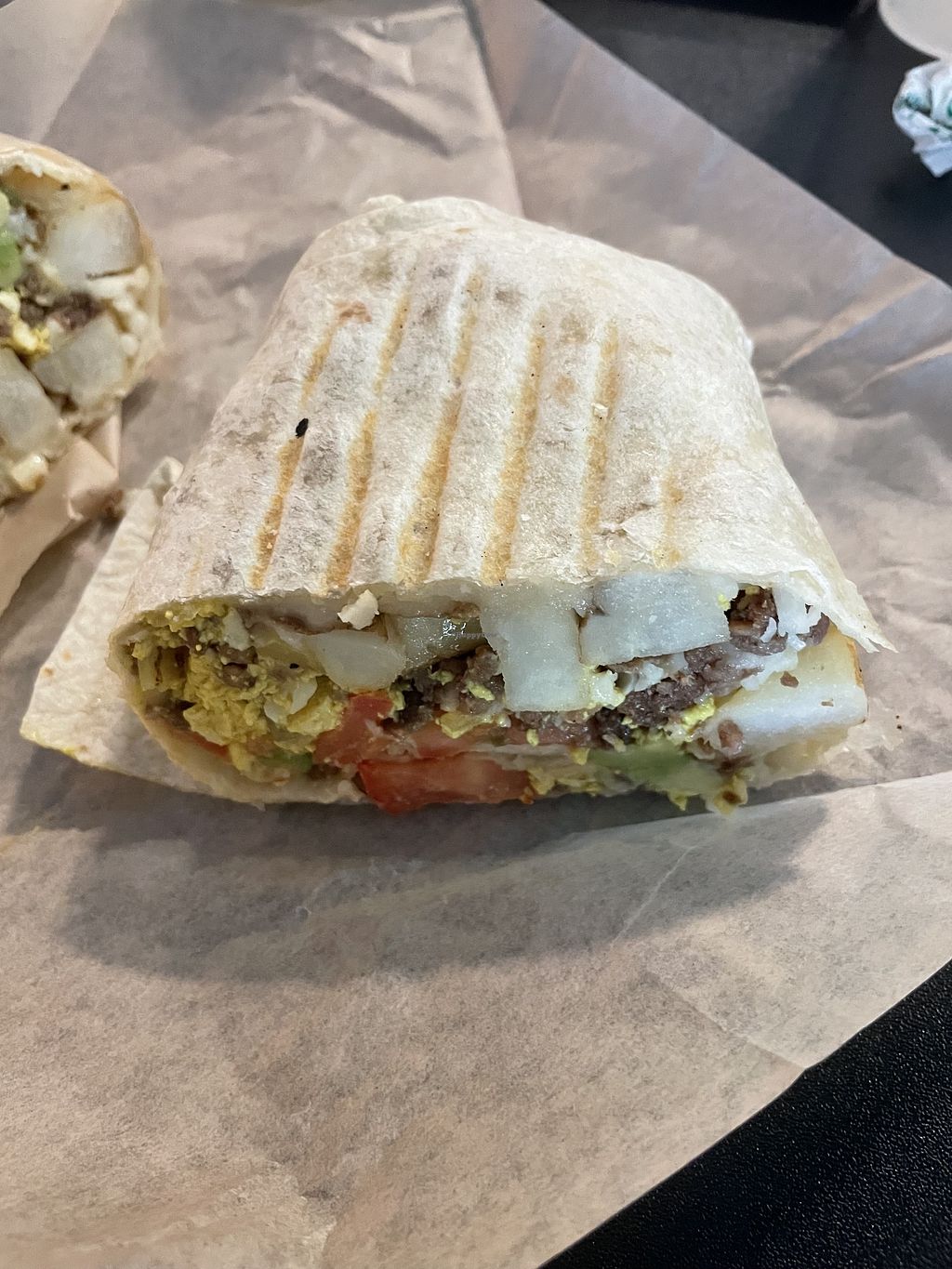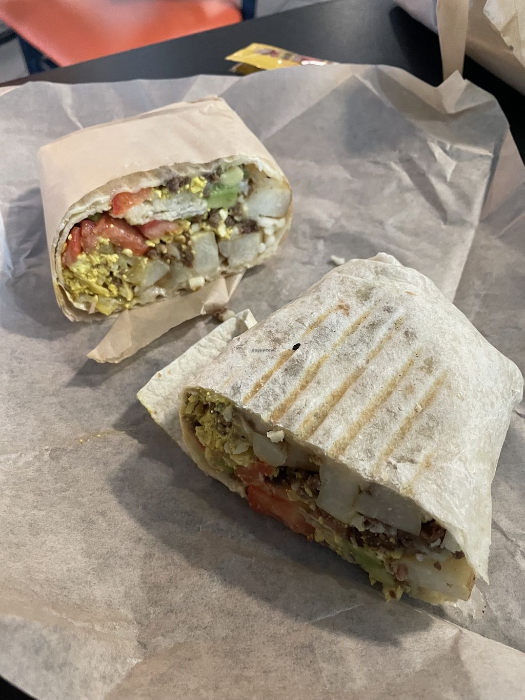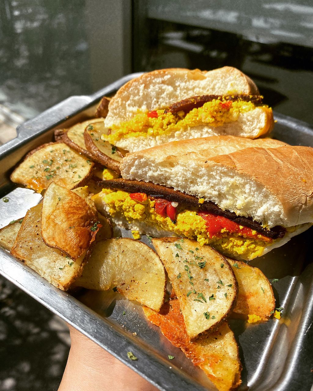 Vegan JOLTED Breakfast Sammie. Tofu scramble, vegan cheese, roasted re…