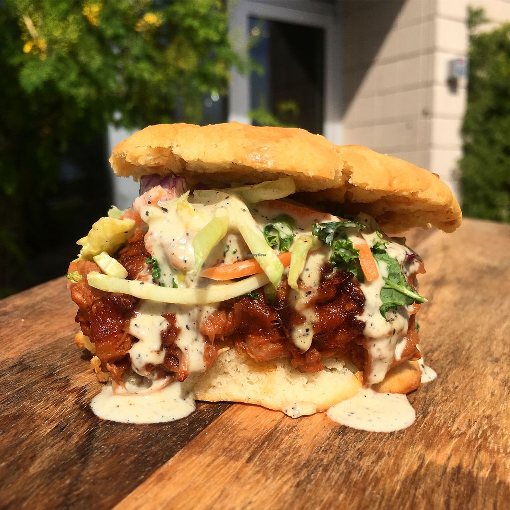BBQ Jack Biscuit. Vegan biscuit with marinated bbq jackfruit, supergre…