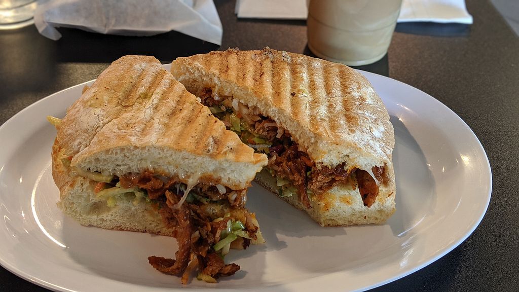 BBQ Jack. Marinated jackfruit sammie with supergreen slaw on a toasted…