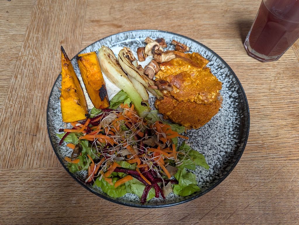 We've tried supporting veganism several times by going to Judgy Vegan. I think there are better ways to spend your money. Nothing is good. Everything is a bit dry, tasteless, uninteresting, and overpriced. One positive point: their interior is huge (and often empty of customers)! And they have a small shop where you can buy vegan chocolate and B12