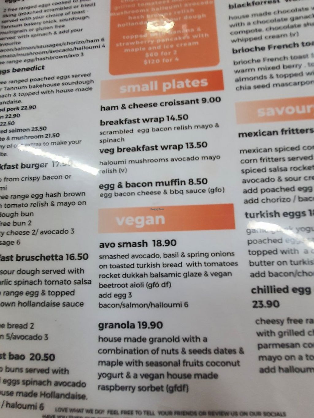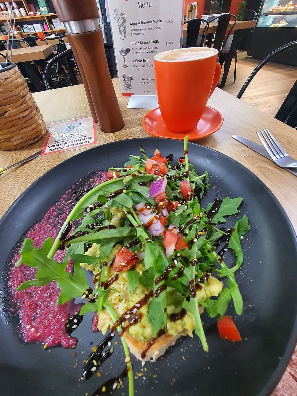 Ordered the beetroot and corn fritter stack, and paid, after staff checked with the kitchen they could still do the brekkie menu. 10 mins later told they've run out. Ordered the avo smash instead for $17.90. One *tiny* piece of bread and way too much underripe avo. The bread had butter that smelt like dairy butter on it. Still quite hungry after finishing.