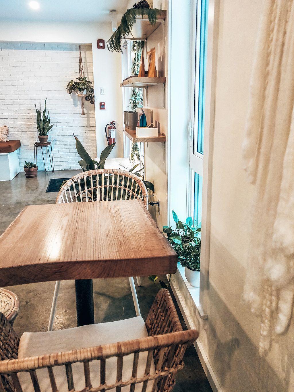 Small amount of tables and chairs to eat in
