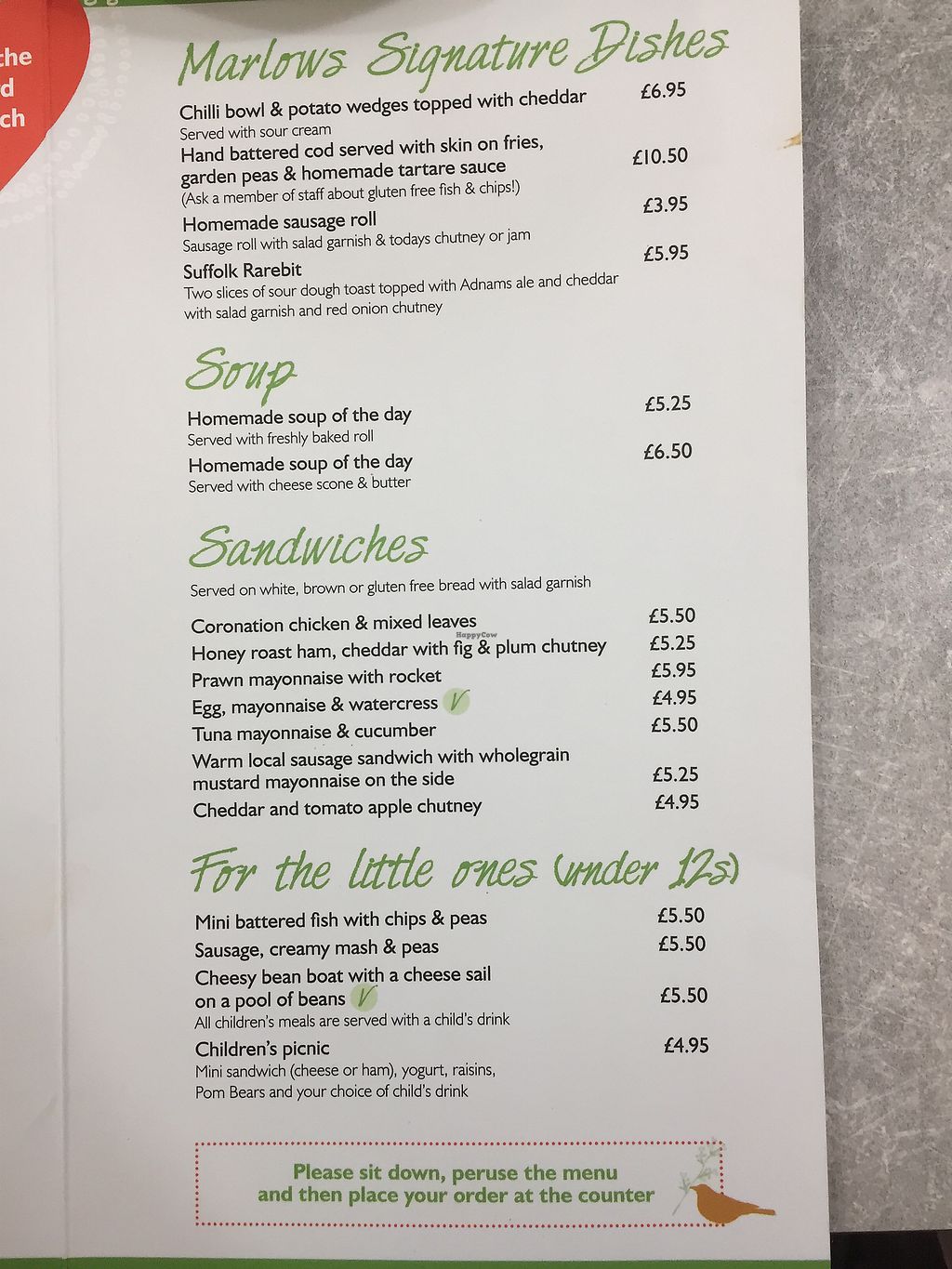 Serves meat, vegan options available. Cafe based at Marlow's Home and Garden centre. Offers a few plant based main dishes both on the menu and usually at least one on the specials board. Also has vegan cakes. Reported closed September 2020.