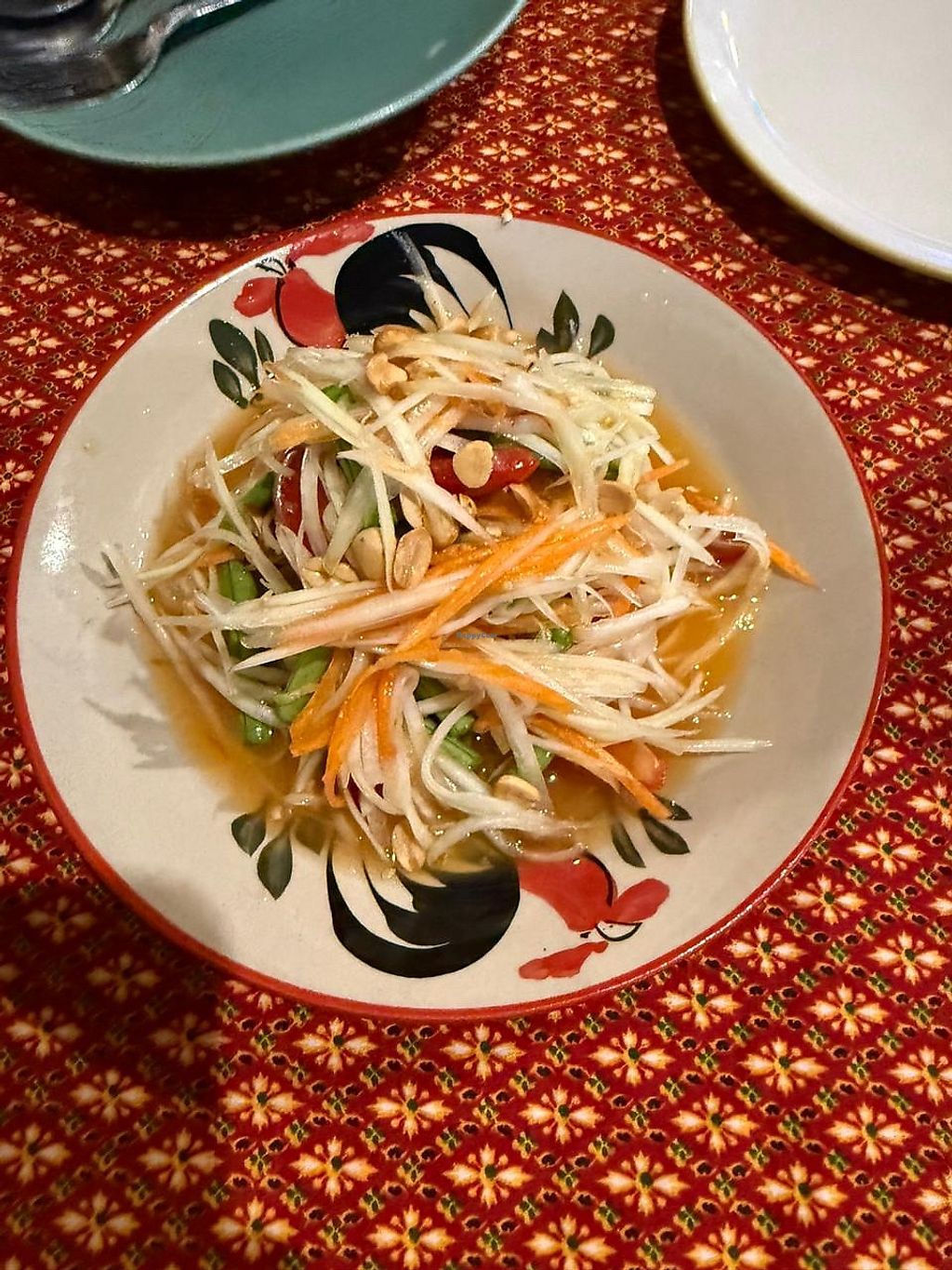 A cozy spot in Ao Nang, discovered through Happy Cow. We were looking for vegetarian Thai food and ordered the raw papaya salad and Thai green curry rice, requesting no fish sauce. The food was delicious, and we’ll definitely be returning!
