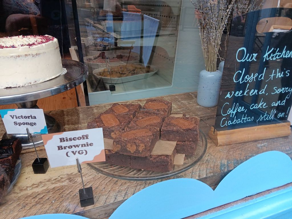 Lots of lovely cakes available. I didn't like the up charge for plant based milk an extra 35p.