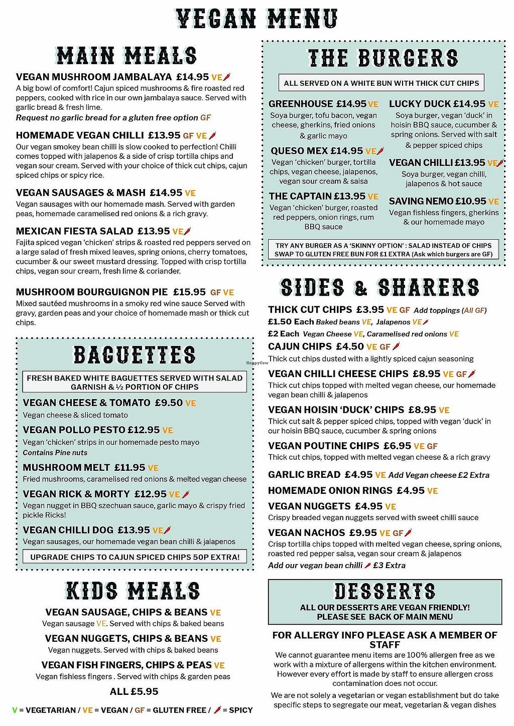 Vegan Menu as of April 2025