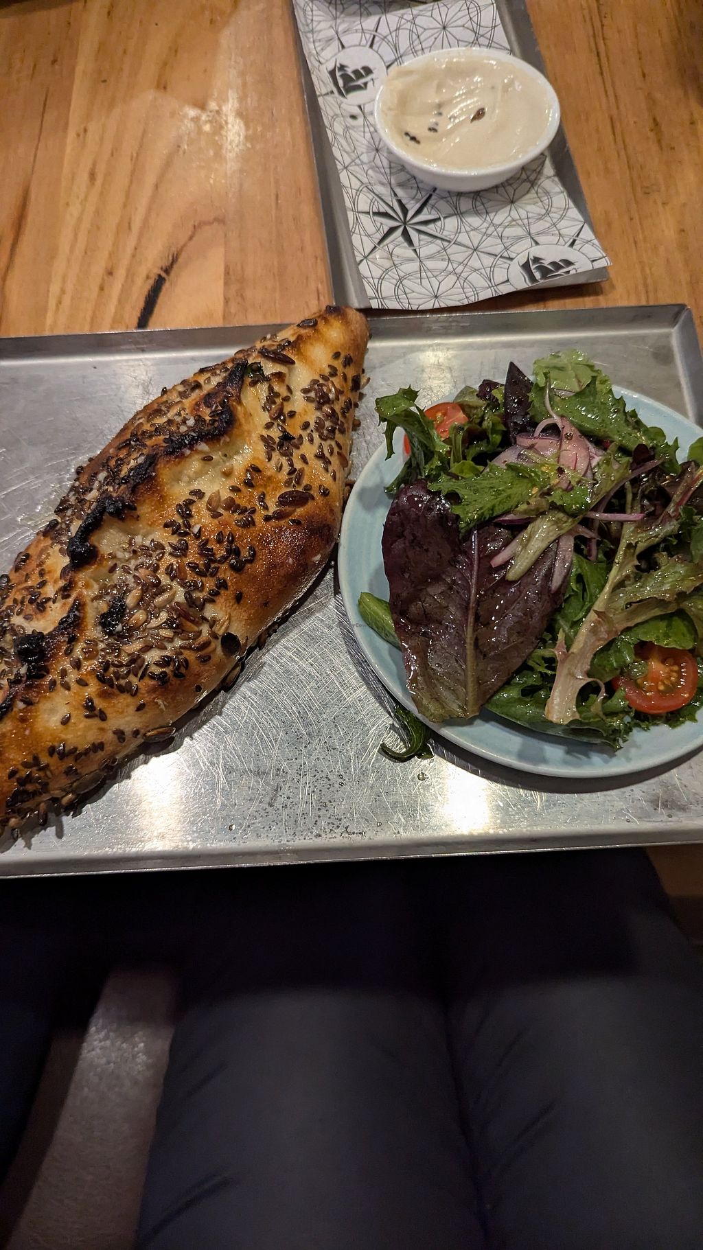 Read moreThere are a few vegan options through the menu, including a filled pastry, a bowl, a pita burger and a pizza. I had the pastry the first time and it was great. The second time, I had the pita burger and the veggie patty inside was really bad! I ended up pulling it out and had the pita with the leftover dips we had from the entrees. I'll definitely go back but certainly not for the pita burger for sure. Another thing we loved were the cocktails, highly recommend The Flying Dutchman!