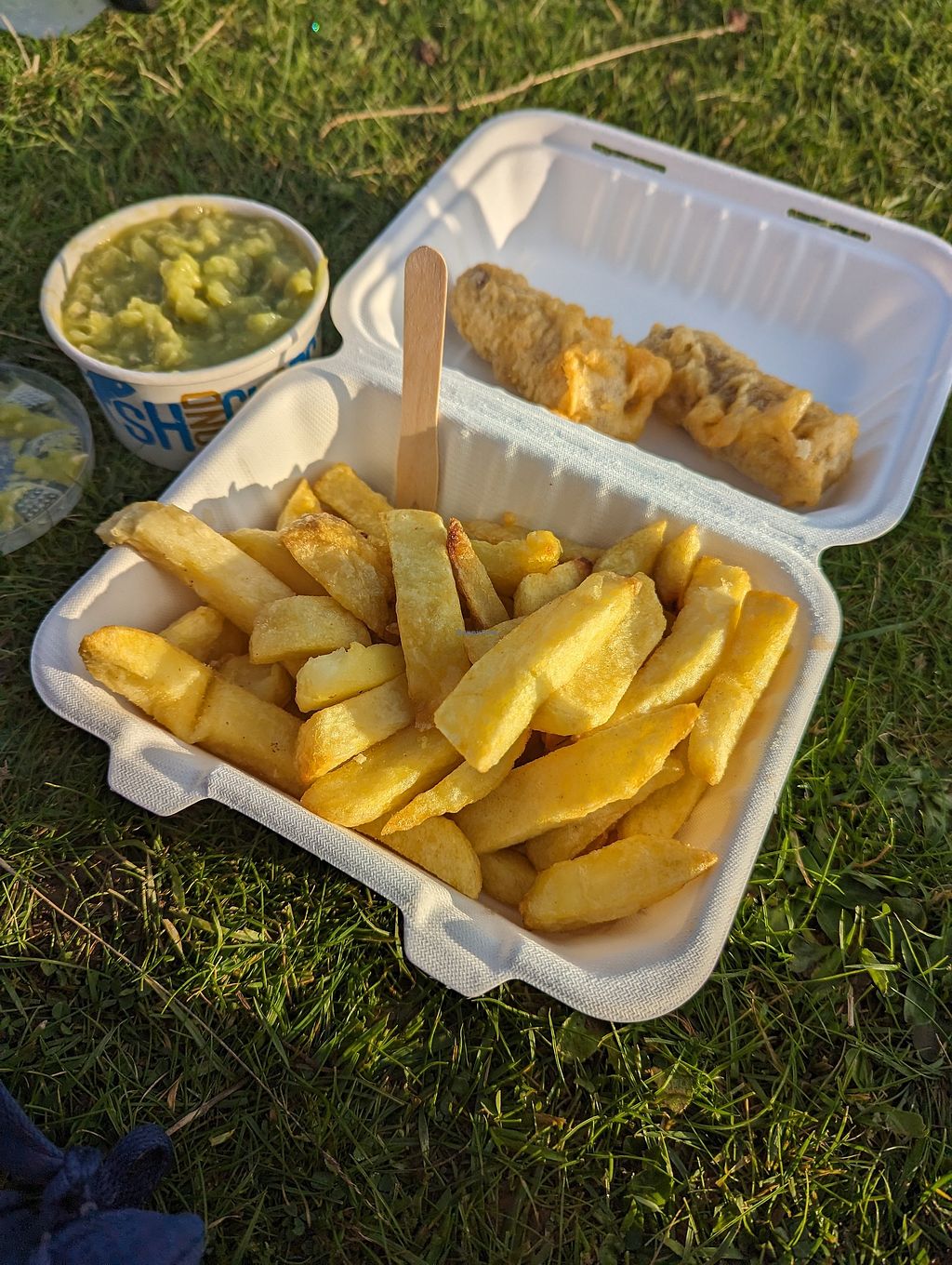 We came here for our last meal and wanted some fish and chips by the lake - unfortunately they were out of the vegan fish (problem with suppliers) so I had the vegan battered sausage instead. I wasn't a big fan of it but my partner tried some and said it was very true to how a battered sausage usually tastes (and liked it), so a good one to have if you're a fan of the meaty taste! The chips and mushy peas were delicious and the man serving us was very friendly and was joking around with us while we were ordering. Would recommend if you're in the mood for some fish and chips and in the area!
