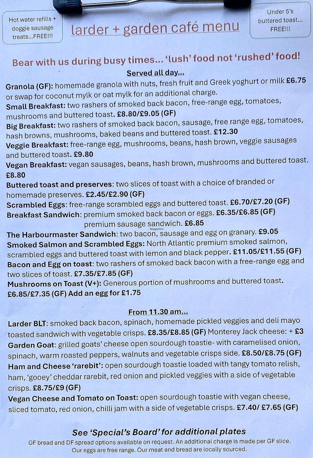 I believe I ordered The Vegan One for lunch. The staff were welcoming and lovely. We did arrive about ten minutes before closing so they could have refused us service, but didn’t. I think the hospitality is excellent and it was clear that they attract repeat customers. Coffee was one of the best i’d had in Brixham and food was very tasty.